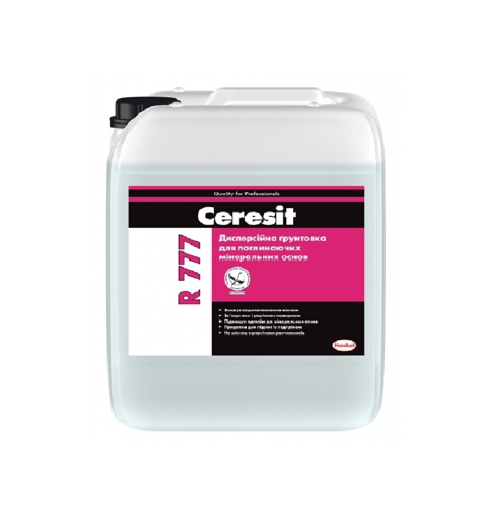 Ceresit R 777 является грунтовочной смесью с водно-дисперсионным составом. Она разработана для покрытия впитывающих минеральных оснований. Благодаря особому составу, грунтовка позволяет увеличить адгезию смесей “Ceresit ” с бетонными, цементно-песчаными и ангидритовыми поверхностями. Ceresit R 777 запрещено применять в качестве гидроизоляции. В составе смеси отсутствуют органические растворители.