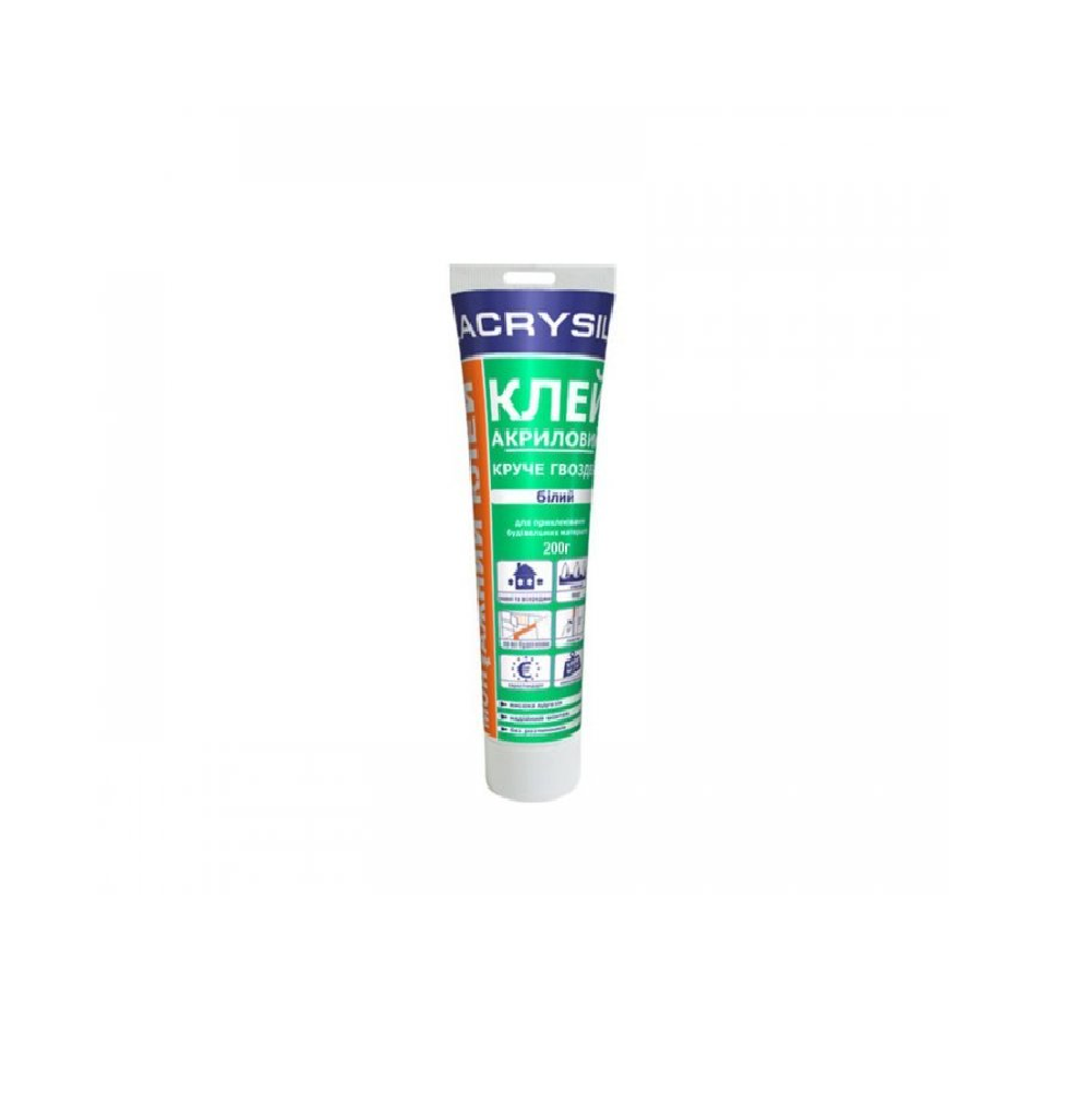 Водостійкий професійний однокомпонентний будівельний клей Lacrysil “Круче цвяхів” . Призначений для проведення зовнішніх і внутрішніх ремонтно-монтажних робіт з приклеювання керамічної плитки, матеріалів з каменю, дерев’яних, гіпсокартонних плит, покриттів для підлоги (лінолеуму, ковроліну), виробів з пінополістиролу, мінеральної вати до основ з каменю, цегли, ОСБ, а також бетон , цегляні, металеві, дерев’яні та інші поверхні.
