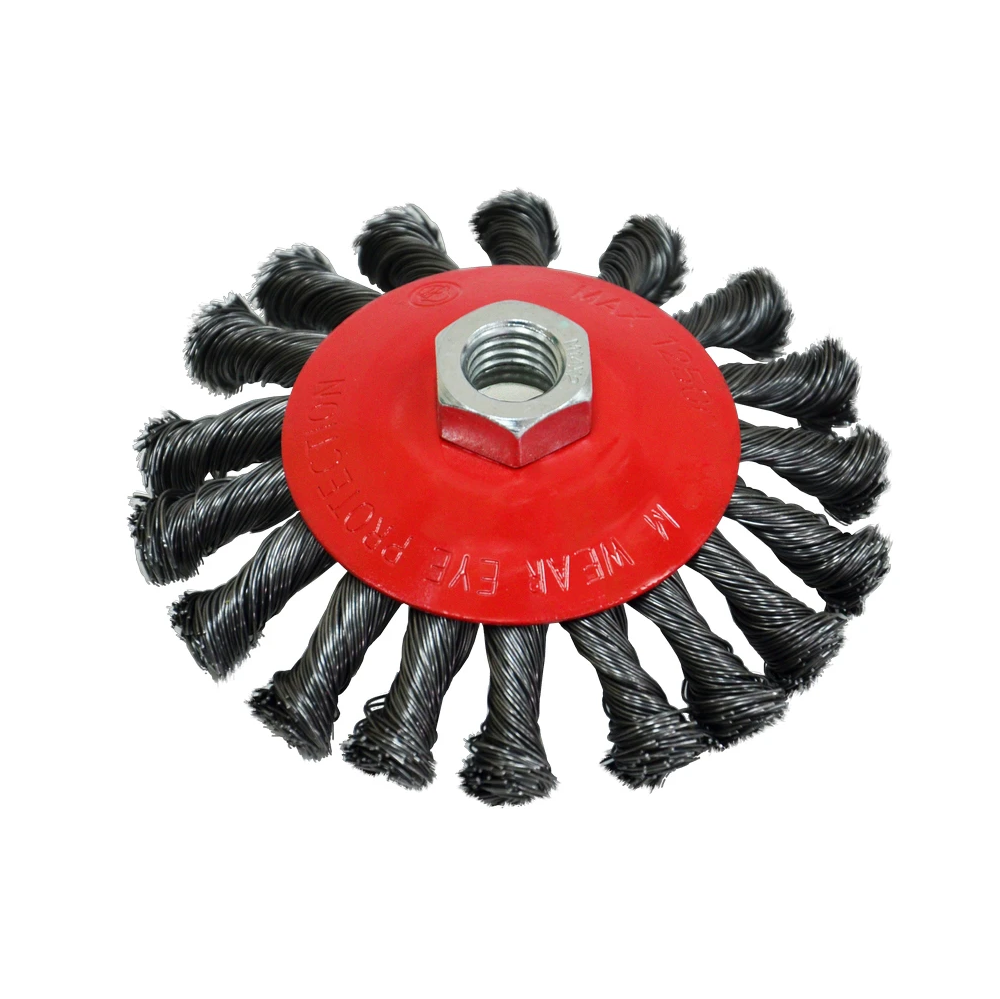 Щітка-крацювання кругова закручена. Для УШМ. Використовується для очищення металевих поверхонь від іржі, лакофарбового покриття, підготовки поверхні для фарбування або зварювання. Сталевий дріт (0,5 мм) міцно закручений у витки проти руху зачистки та надійно закріплений в обоймі, що забезпечує тривалий ресурс роботи.