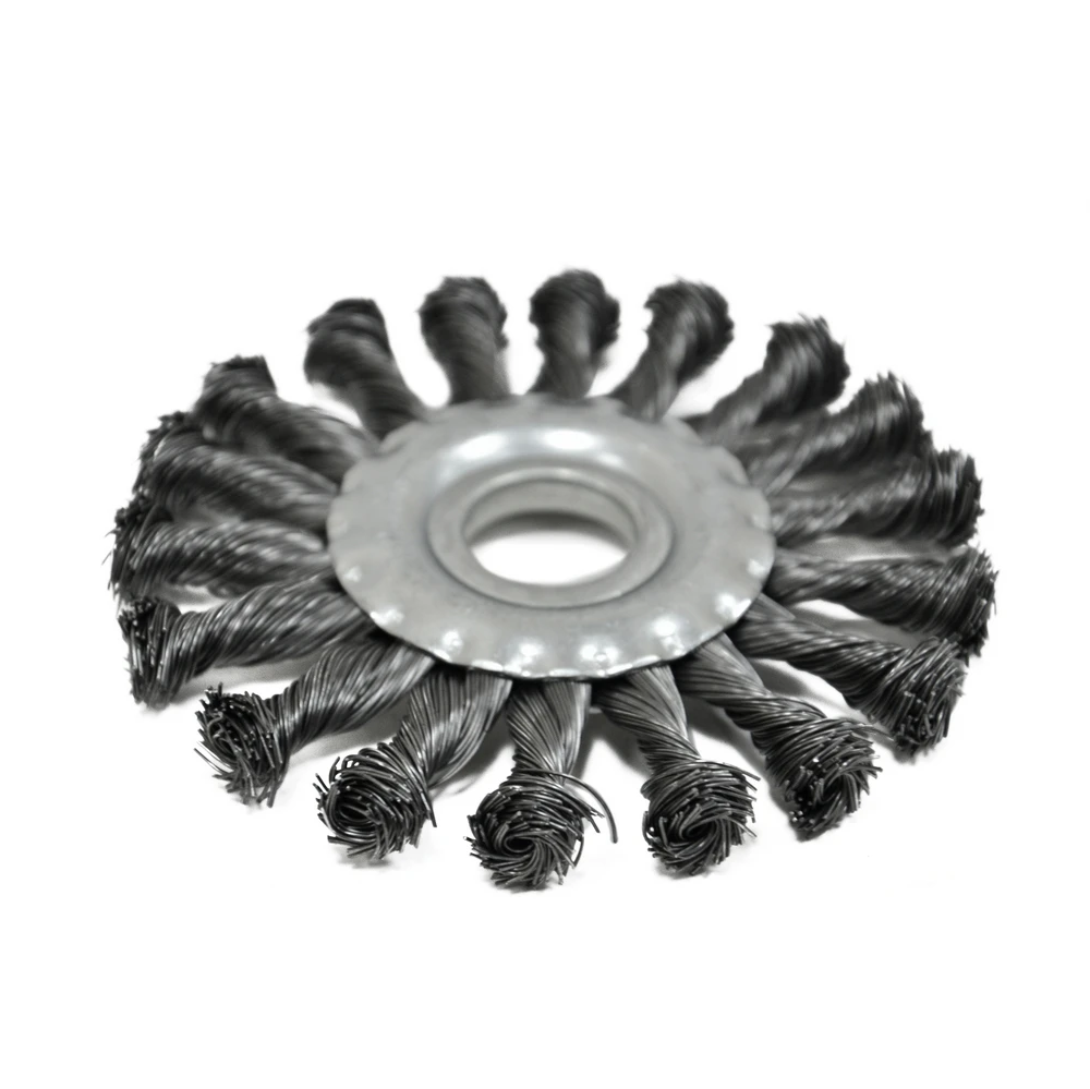Щітка-крацювання закручена. Для УШМ. Використовується для очищення металевих поверхонь у кутових місцях від іржі, лакофарбових покриттів, підготовки поверхні для фарбування або зварювання. Сталевий дріт (0,5 мм) міцно закручений у витки і надійно закріплений в обоймі, що забезпечує тривалий ресурс роботи.