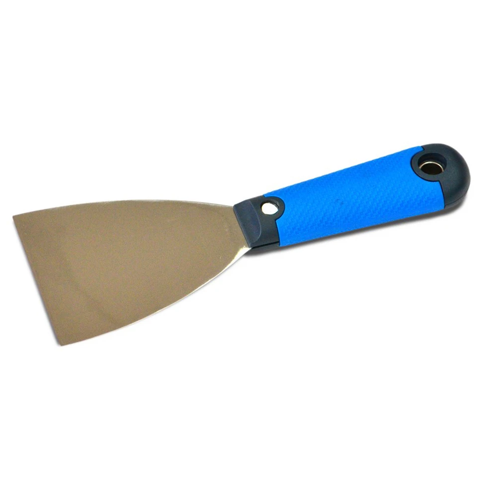 Шпательна лопатка тип “Профі” – профільоване сталеве полотно з нержавіючим покриттям. Двокомпонентна ергономічна ручка з отвором для підвішування. Служить для нанесення шпаклювальних сумішей при обробних роботах. Можна використовувати для видалення забруднень із поверхонь перед початком малярських робіт.